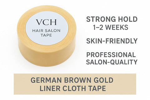 VCH Professional Hair Extension & Wig Tape – German Brown Gold Liner Cloth, Strong Hold 1 inch x 3 yards – Weather Resistant, Skin-Safe, Easy Removal